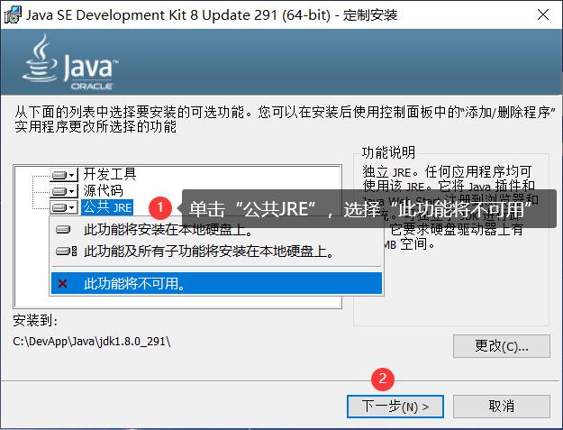 安装图示的要求,选择不安装JRE,为什么不安装,后面会解释。